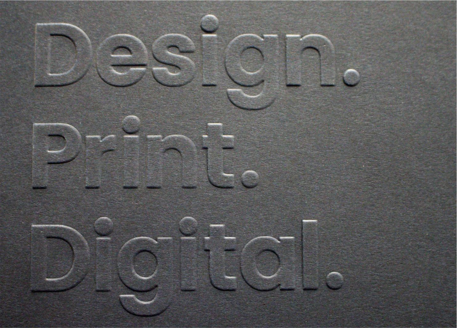 Debossing” is similar to embossing, but recesses the design rather than raising it. Rather than the paper being raised in specific areas, it is indented. The process involves applying pressure to the front side of a substrate and forcing the material down from the surface. Although it is not as common as embossing, it is occasionally used to provide a different effect or appearance that fits a particular theme. Embossing and debossing on digitally printed applications is an off-line process, which may add a significant cost to the job.