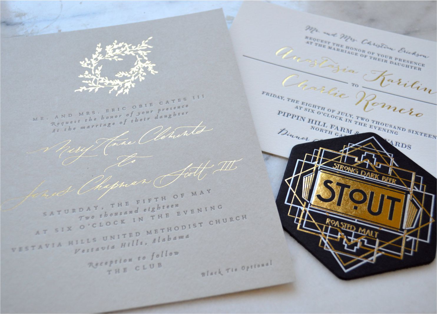 Foil stamping is the application of metallic foil (often gold or silver) or pigment to press a thin layer of foil onto the paper's surface with a heated die through heat and pressure. ... Blind Embossing is an image pressed into the paper creating a three-dimensional design without the use of ink, foil or pigment.